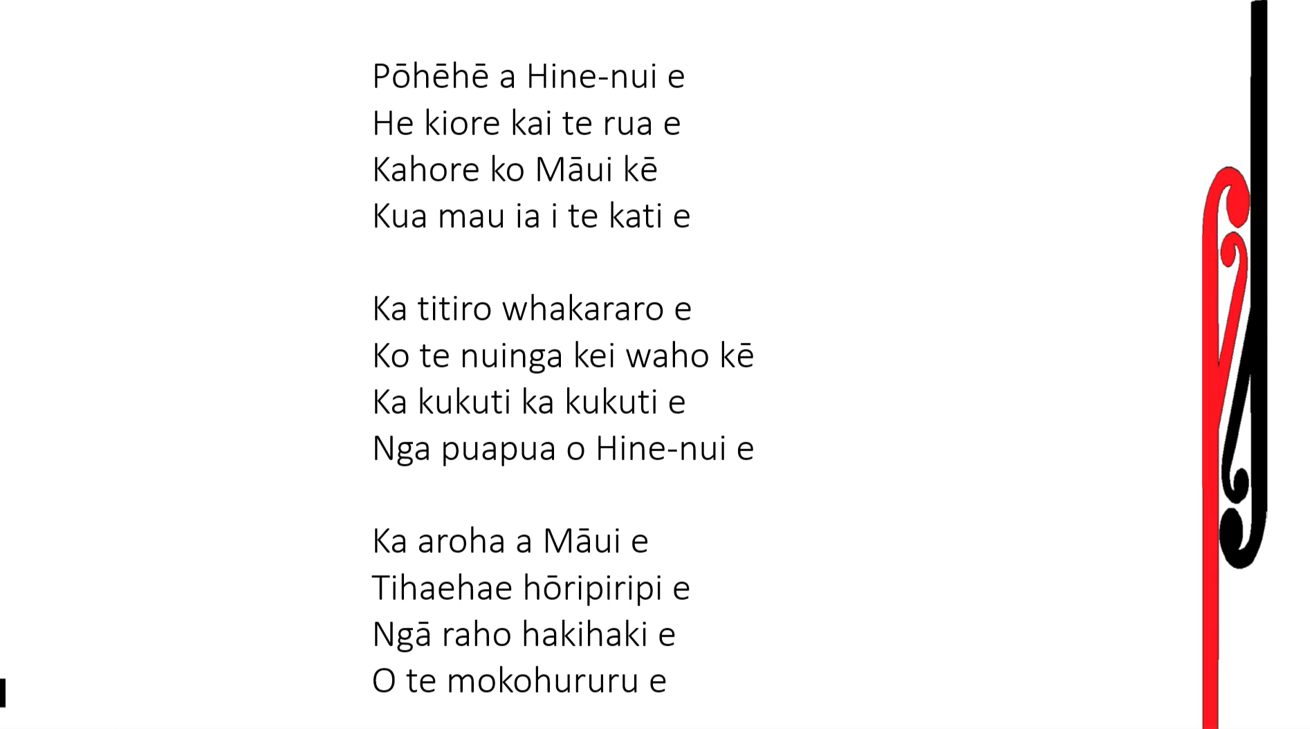 Here are the kupu to the waiata at the end.