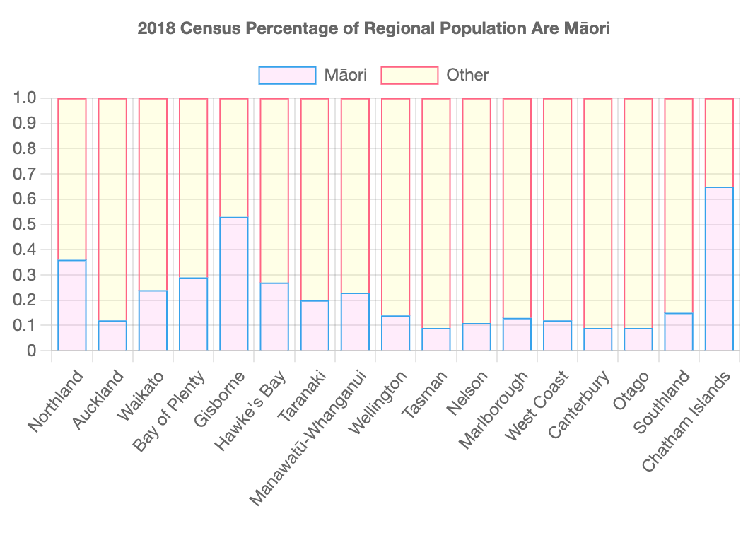 Custom made charts to show where Māori lived at the time of the 2018 Census, because Statistics New Zealand doesn't break it out that way.