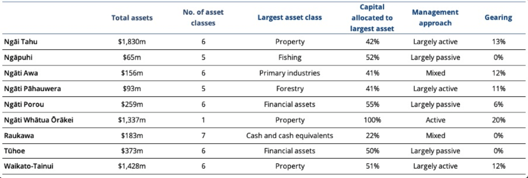 Published in Stuff.co.nz here are some Iwi organisations and their asset size. Note that relative size of assets versus population distribution.